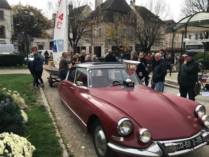 - les 70 ans de la DS : Ce modèle et son equipage couronnés Grand Prix d' Honneur au concours d'élégance à Montlhery, en témoigne l'énorme coupe trônant sur son capot