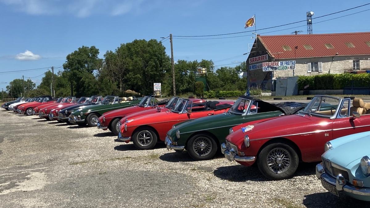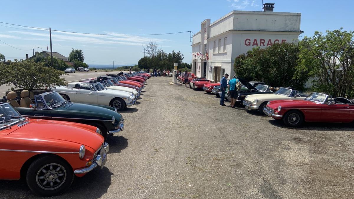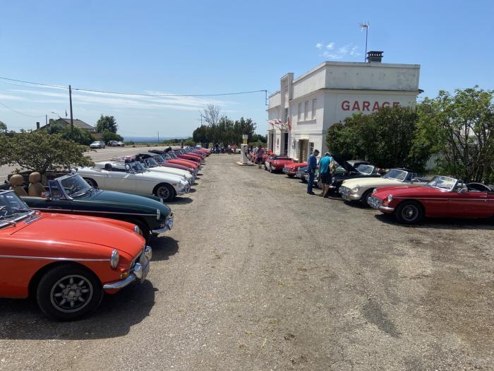130 MG en majorité MGB mais aussi MGA, MGB GT, MGC V8 ont fait halte ce samedi 04/06/2022 à Bel Air au cours de leur balade en Bourgogne.