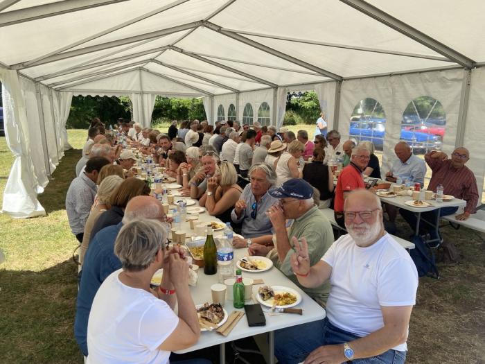 après avoir fait honneur à notre buvette et à la boutique, ils ont pu se restaurer, servis par le traiteur Eric, abrités du soleil dans le poste de secours et sous un chapiteau.