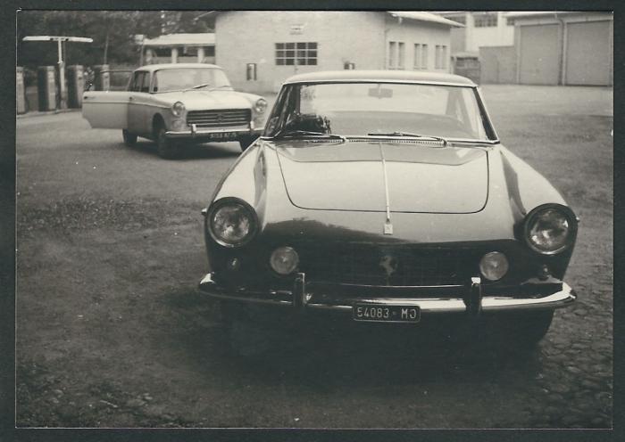 Prototype de la Ferrari 250 GT2+2, devant la 404 de P. Bouvot ingénieur Peugeot