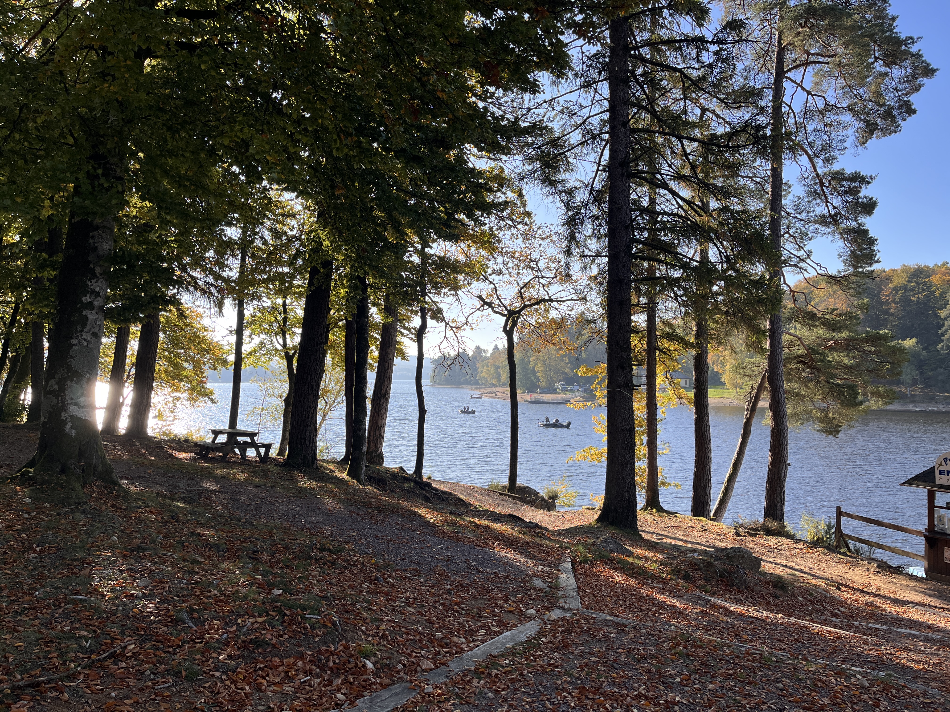 Pause pour le premier lac  visité  : le lac des Settons, le plus connu et  nettement plus fréquenté l'été :