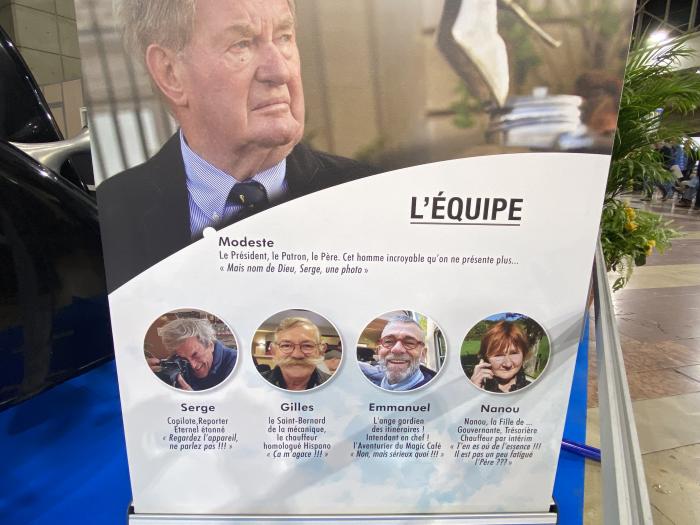 A son arrivée, l' AOC fit un triomphe à Modeste et son équipe composée de Serge, copilote et photographe,  Gilles le moustachu mécanicien Hispano, Emmanuel l'intendant de l'itineraire et Nanou la fille du patron, surveillante en chef