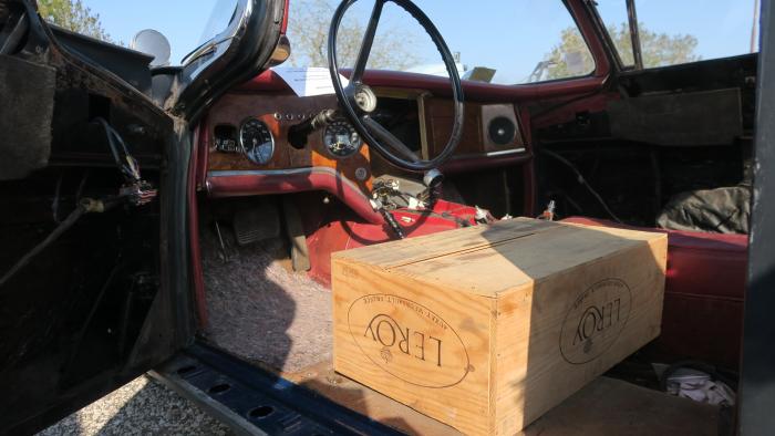 Francis, membre AOC a fait l'effort de faire plus de 30 kms pour venir à ce RV avec son modèle FV3 qui est vraiment au balbutiement de sa restauration, en témoignent les portières dont les serrures ont été remplacées provisoirement par des sandows, le tableau de bord qui semble avoir reçu une grenade et le superbe siège baquet de marque LEROY, une des grandes maisons vinicoles bourguignonnes.....!