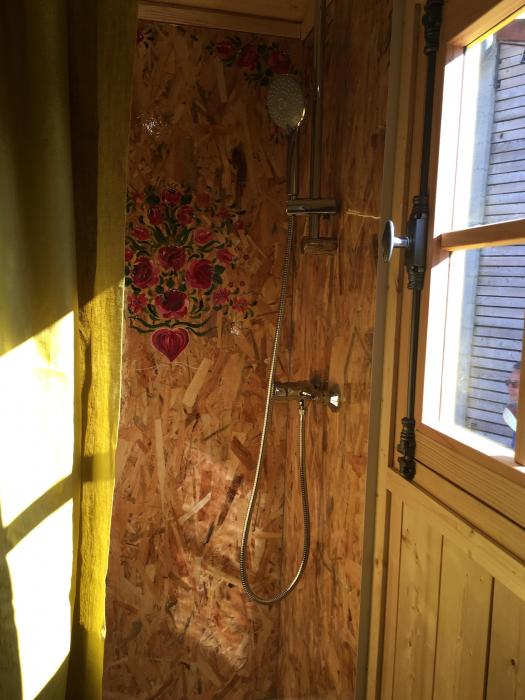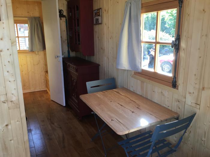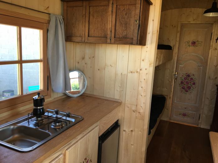 L'interieur est trè cosy...avec cuisine equipée, salle de bain... barbecue exterieur en "terrasse"...