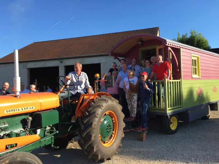 Yves avait bien fait les choses avec un apéritif autour des ses tracteurs et ses voitures anciennes pour remercier tous ceux qui ont participé à l'élaboration de ce projet un peu fou.