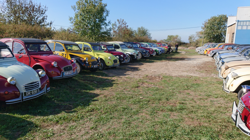 Organisé avec la collaboration des "Titines de la Côte", pas moins de 110 2 CV Citroën (= 220 CV !) ont gravi sans encombre la montée de La Rochepot pour venir à ce RV.
