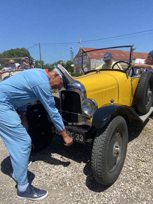 Cette auto est venue par la route depuis Paris, ce qui constitue déjà un exploit car la moindre montée se fait à 35 km/h et les routiers qui suivent derrière ne sont pas toujours sympas !