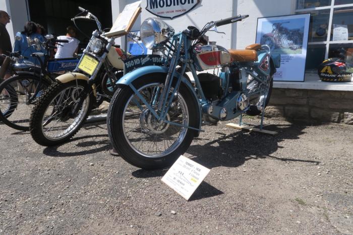 Cette Motobecane, remarquablement restaurée, présente deux particularités originales :