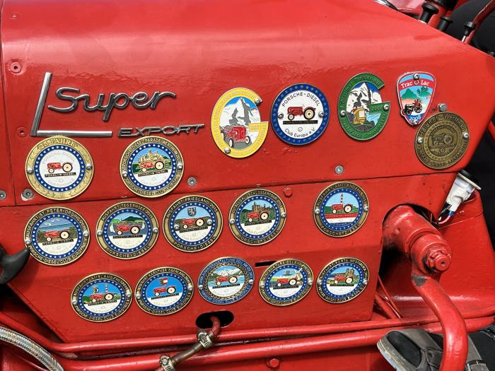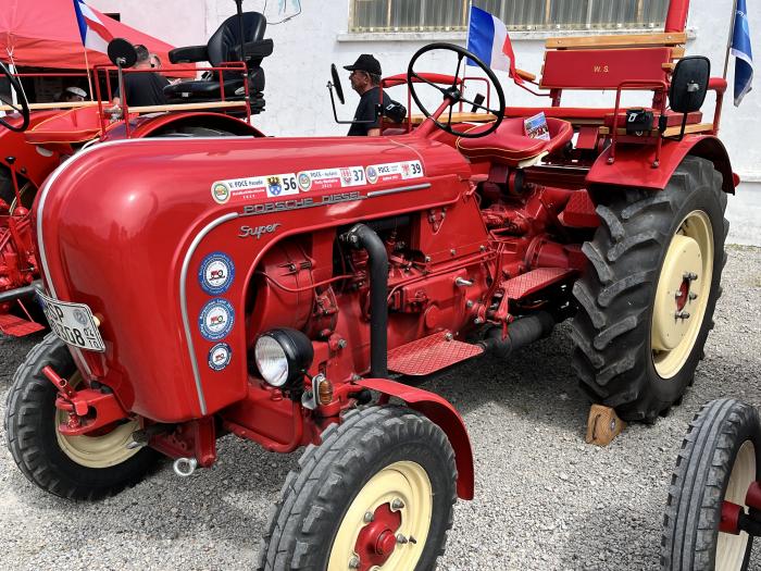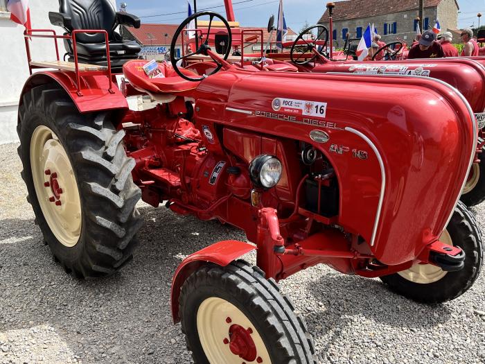 Honneur aux tracteurs Porsche : Ces tracteurs ont été conçus par la marque de voitures de sport avant guerre a la demande d'Hitler : faire un tracteur du peuple Ils seront commercialisés ensuite jusqu'en 1956. Il en existe plusieurs modèles , du Porsche Junior monocylindre aux plus puissants 4 cylindres Porsche Diesel (mais pas 4 à plat comme sur les voitures).