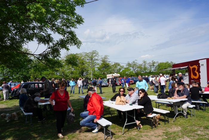 Les bénévoles de l'AOC sont encore en plein travail d'installation que déjà arrive la première 203 bordeaux rutilante pilotée par Monsieur le Maire d'un commune périphérique chalonnaise, peugeotiste convaincu et levé de bonne heure !