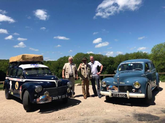 Messieurs Thierry Peugeot en 203 cabriolet de 1956 et Xavier Crespin Directeur Général de l’Aventure Peugeot