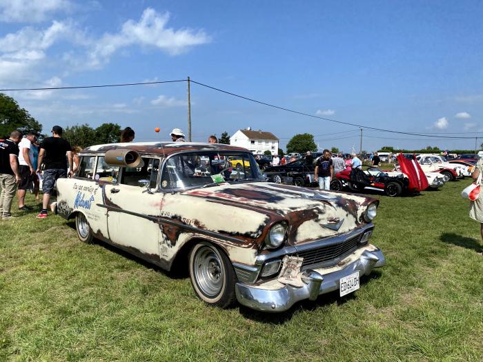 D'autres amis hollandais résidant en voisins sont venus en Juvaquatre break suivie de deux superbes 2 CV 1955 ( donc à capote longue) strictement conservées dans leur jus !