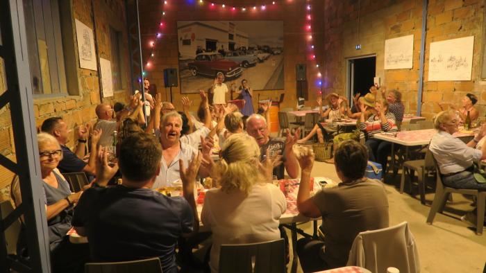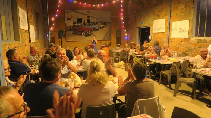 Le repas s'est effectué dans le Poste de secours dans un belle ambiance et qui s'est transformé ensuite en salle de spectacle pour écouter admirer et même danser sur des airs spécialement choisis et interprétés par Sandrine DURUPT qui n'a pas ménagé sa peine , de 10 heures jusqu'à une heure avancée de la nuit......