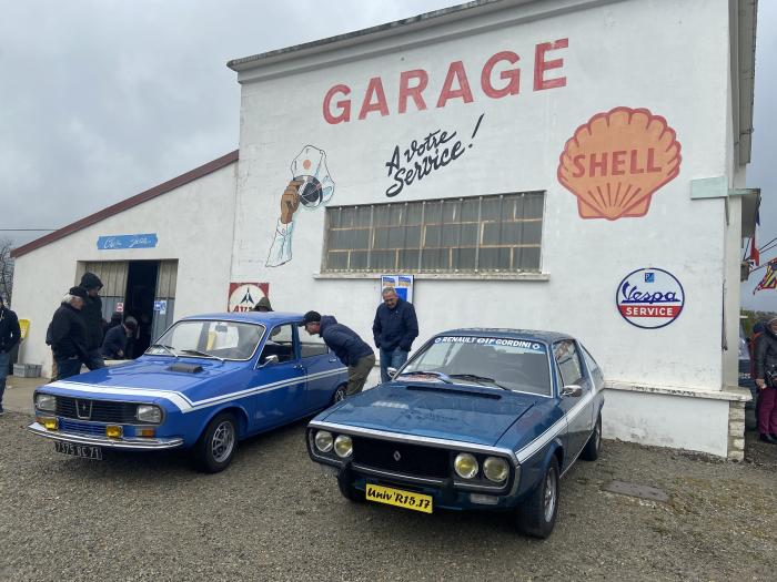 Parmi les premiers arrivés, Vincent DESCONE, du club Univ' R15 R17, au volant de la très rare et belle R17 Gordini que nous avons mis à la place d'honneur devant notre station. Est venu s'y adjoindre une non moins élégante R12 G, également stickée dans son  habit d'origine: