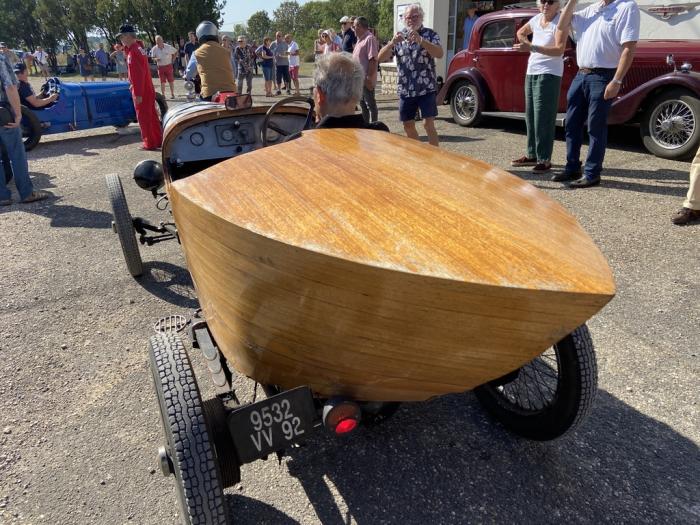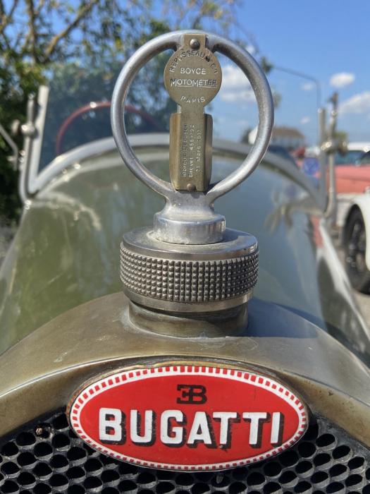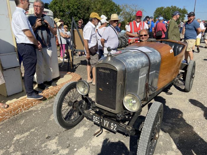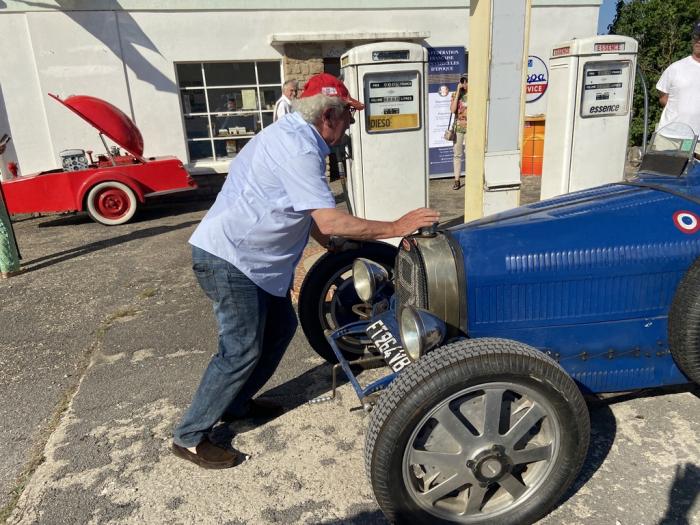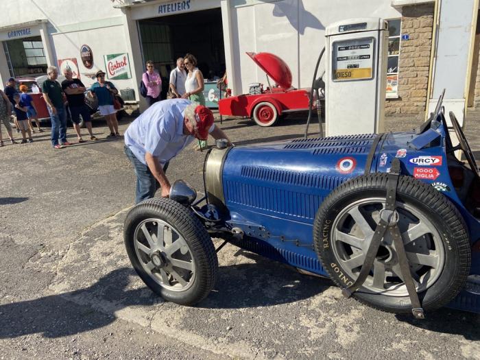 Première cyclecar arrivé et pas des moindres: cette Bugatti fait un caprice de batterie, démarrage des le premier coup de manivelle mais ralenti instable obligeant à une poussette pour se garer.