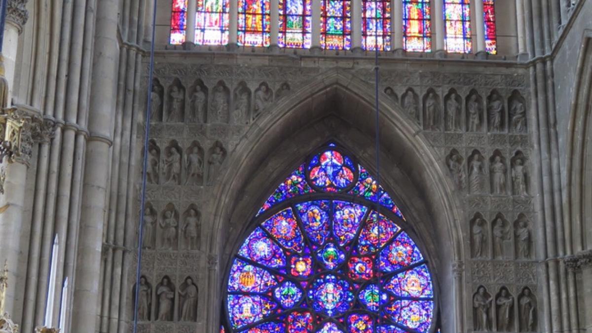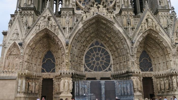 Pas de visite de Reims sans visiter sa cathédrale, incendiée pendant la guerre de 14, et dont certains vitraux ont pu être démontés et sauves, les autres ont été remplacés par de artiste dont Marc Chagall pour les vitraux bleus.