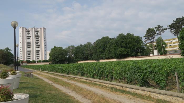 Visite débutée à l’extérieur ou se situe, juste au dessus des caves et quasiment au milieu des immeubles de la ville, le Clos LANSON, équivalent des clos de nos grands crus. et dont la bouteille dépasse les 200€ à la vente (lorsqu'on peut en avoir !!)