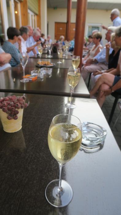 Et comme il se doit ici, l' apéritif (bien mérité car le trajet a été chaud!) était au champagne .
