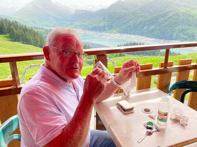 Patrick Chifflot a absolument voulu poser devant le célèbre bar du Petit Saint Bernard dont il était un des clients les plus assidus. A noter que les seuls autres clients de ce lieu  désert étaient sans doute les moines du monastère voisin!
