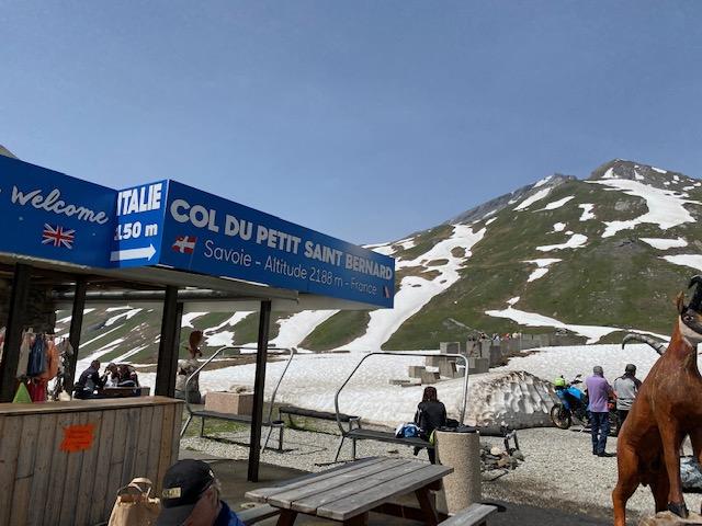 Après la descente depuis Roselend, il faut remonter vers l'Italie dont la frontière se situe en haut du col du Petit Saint Bernard ( 2188m), la pause panier repas s'y impose malgré la température un peu frisquette