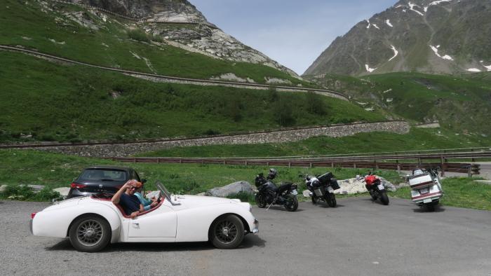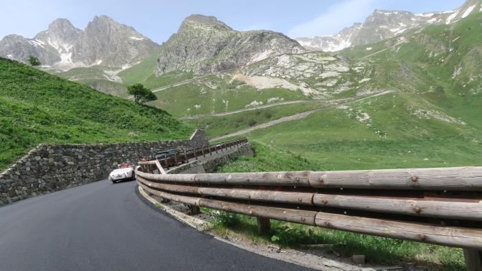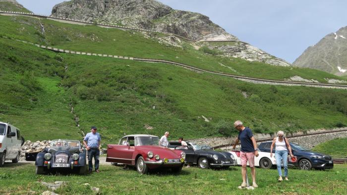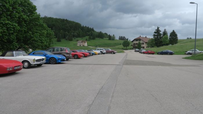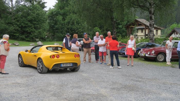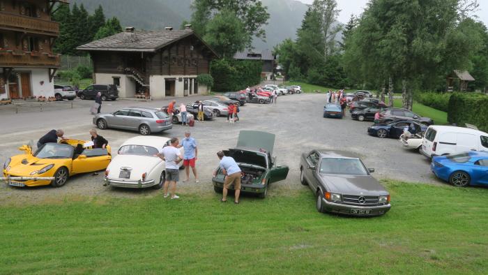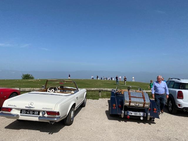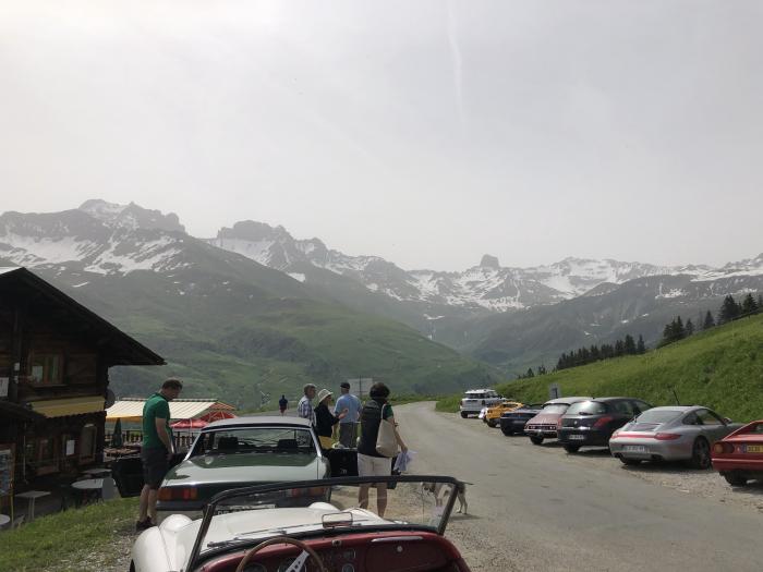 De bon matin (7h pile poil) départ de Beaune d’une quinzaine d’équipages pour rejoindre le lac Léman avec une mise en jantes dans les virolos (insoupçonnés) de la Bresse et du col de la Faucille (qui sont par contre bien connus). Une pause technique et café au Col de la Savine (le 1er col du week end à 984 m) permettait les retrouvailles d’autres équipages.