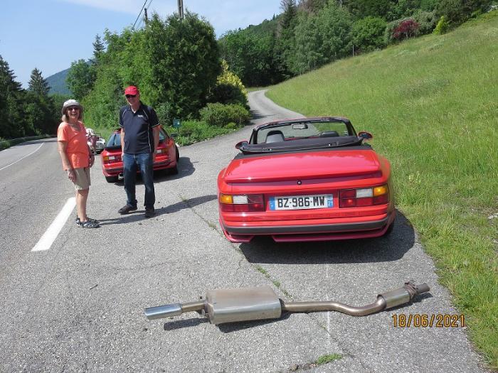Toute cette joyeuse équipe à traversé le Jura et Genève dans la plus grande discrétion jusqu'à ce que Gilles et Annie Ponnelle - ou plutot leur 944 -  décident de se faire remarquer par une brutale augmentation des décibels du pot d'échappement bien décidé à prendre le large.