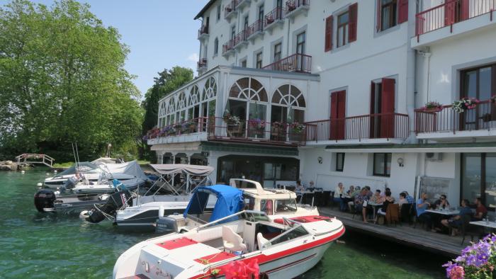 L'Hotel de la Plage nous a régalé  avec filet de Féra du lac au menu que nous avons pu déguster quasiment les pieds dans l'eau.
