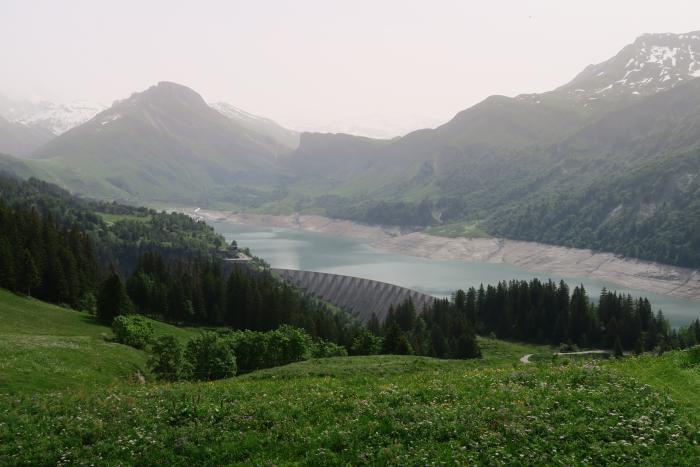 Pause café (ou thé pour certain)  au dessus du lac (plutôt à sec !) et barrage de Roselend avant la montée du Cornet de Roselend (1968m)