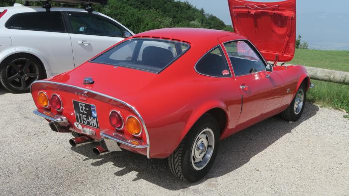 Au somment du Salève, d'autres clubs de voitures anciennes étaient présents : une très belle Lancia Aurélia, restaurée à la suisse - c'est à dire sortie d'usine - et une Opel GT 1900