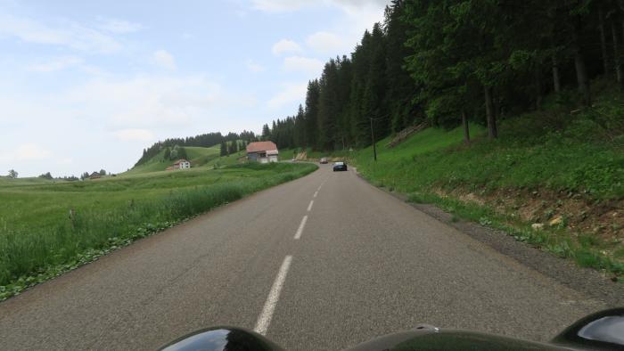 Passage par les routes plus paisibles du Jura et déjeuner dans une auberge à l'excellent menu jurassien, pendant lequel l'orage a pu nettoyer nos carrosseries!