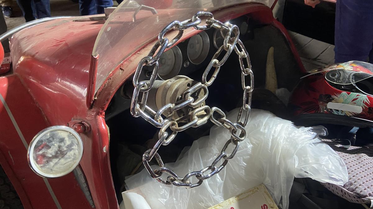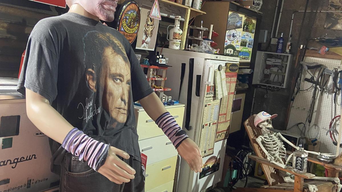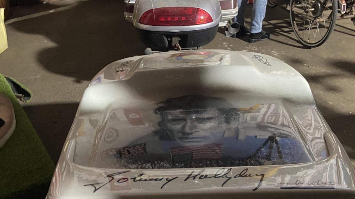 Il nous a permis de visiter sa station service toute entière consacrée à Johnny (le vrai) et son garage, véritable caverne où il accumule dans un joyeux désordre organisé voitures anciennes (énorme Cadillac immatriculée "MAFIA", Félicie la 202 Peugeot aux nombreux exploits routiers) jusqu'au gigantesque panneau mural de la Maison Blanche acheté au musée des voitures présidentielles de Montjalin.