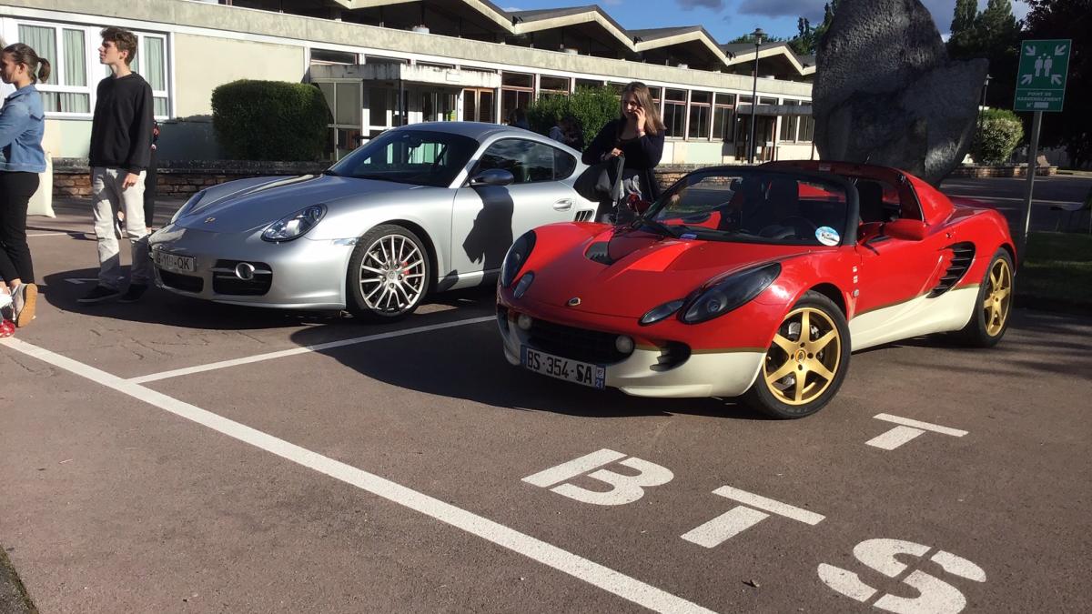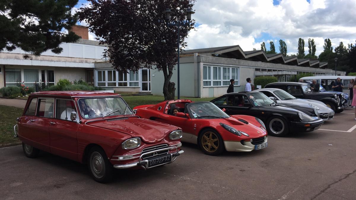 Devinez quelle voiture a eu le plus de succès : nous avions l’Austin Healey du past président, la traction du boutiquier venu de Chalon, l’amy 6 du Président sans le président, une Lotus Élise, un combi T1 samba, 3 Porsche et enfin la 2 CV du secrétaire.