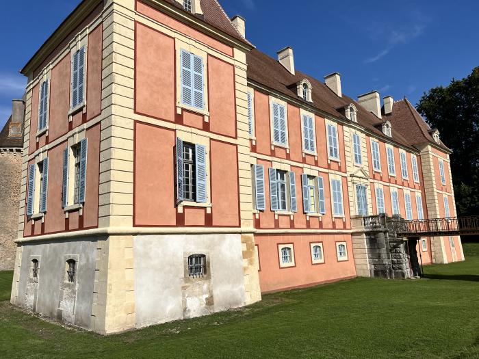 Les 4 tours et les douves entourant le château rappellent son origine féodale , alors que les façades variées retracent les différentes transformations au cours des siècles : corps de logis de 1717 et façade opposée datant du 19° siècle
